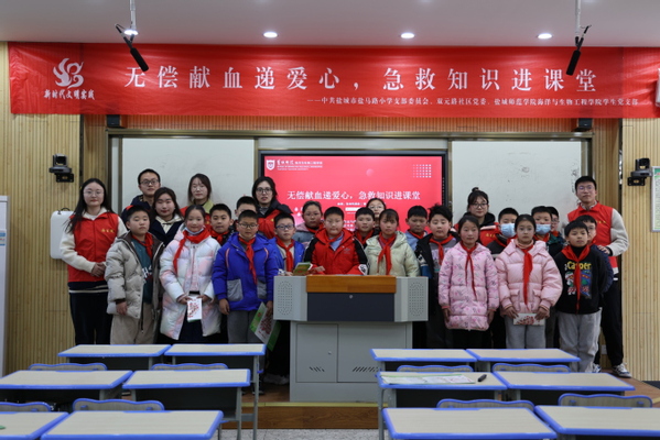 32日,海洋与生物工程学院学生党支部联合双元路社区党委走进盐马路小学,开展了无偿献血递爱心,急救知识进课堂主题爱心课堂活动。盐马路小学副校长凌万春、双元路社区网格员、海生院学生党支部党员代表参加了此次活动。