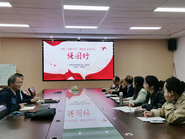 陈胜利教授结合江苏省高校“双带头人”教师党支部书记工作室建设和“强国行”团队培育经验,系统分享了基层党组织建设的创新实践成果。他从思想引领、组织建设、品牌创建三个维度,生动阐述了外国语学院教工第一党支部在强化政治功能、提升组织力方面的特色做法:一是构建“理论+实践”双轮驱动机制,打造“红色译站”党建品牌;二是实施“党建+专业”融合工程,推动翻译专业建设与党建工作协同共振;三是创新“三会一课”形式,开展沉浸式主题党日活动。他强调,新时代党支部建设要坚持目标导向与问题导向相结合,着力在党建联建、教育服务、科技赋能等方面下功夫,切实发挥党支部战斗堡垒作用。