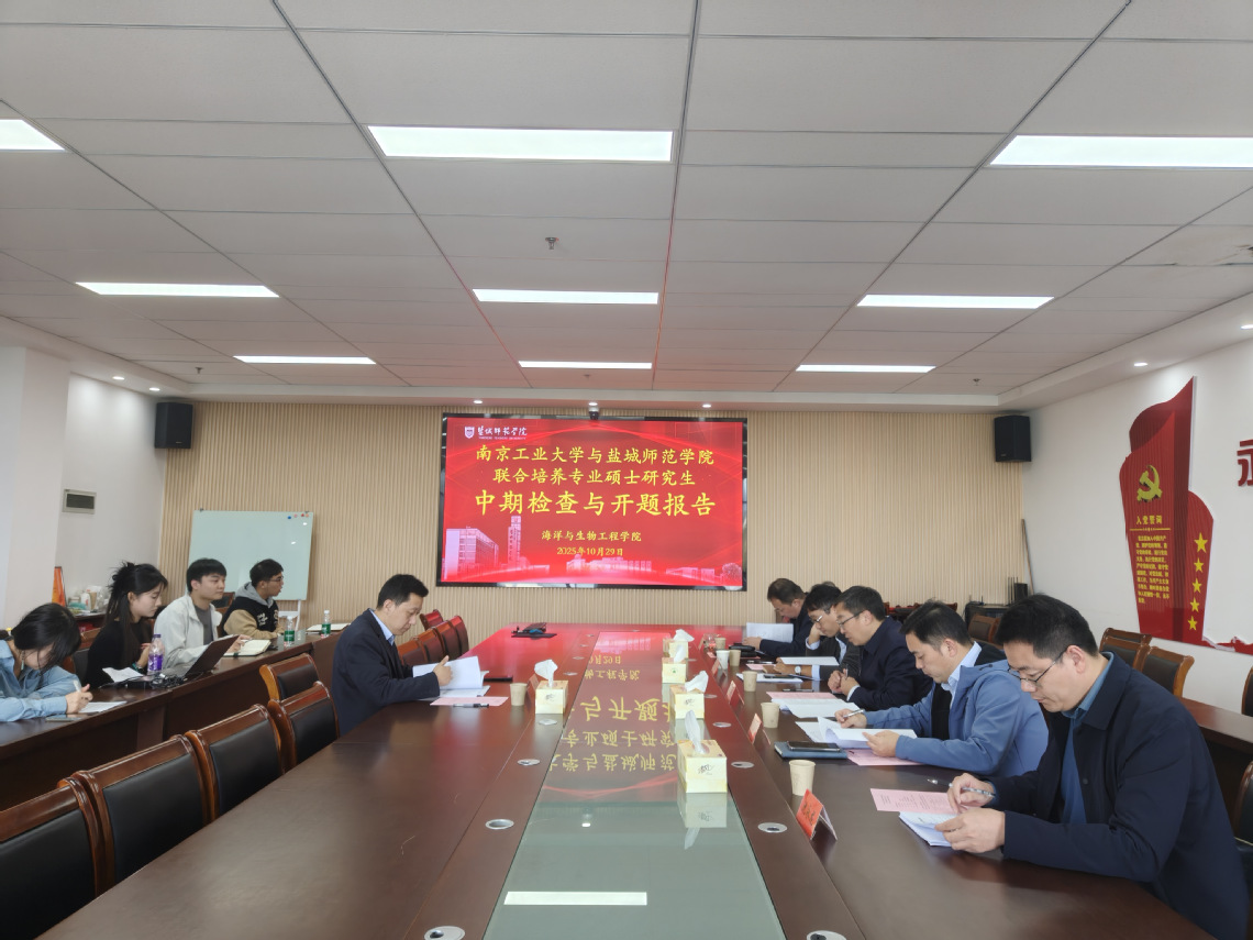 10月29日下午,海洋与生物工程学院召开盐城师范学院与南京工业大学联合培养生物与医药专业硕士研究生2023级学位论文中期考核暨2024级开题报告会。会议由专家组组长费正皓教授主持,专家组全体成员及研究生导师代表参加。