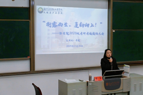 11月26日,海洋与生物工程学院在公共教学楼A206举办题为“衔露而生,蓬勃向上”——2023级考研考编鼓劲大会。2023级辅导员班主任及全体同学参加会议,会议由党总支副书记李霞主持。