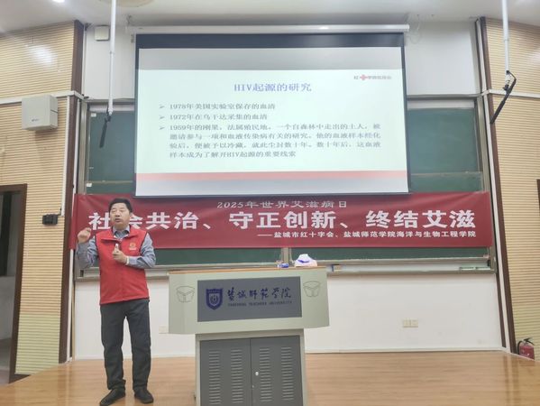 今年12月1日是第38个世界艾滋病日,为进一步宣传普及艾滋病防治知识,营造全民参与艾滋病性病防治工作的良好氛围,11月30日,海洋与生物工程学院联合盐城市红十字会组织开展了“社会共治、守正创新、终结艾滋”2025年“世界艾滋病日”主题宣传活动。200余名同学积极参与,共同学习艾滋病预防知识。
