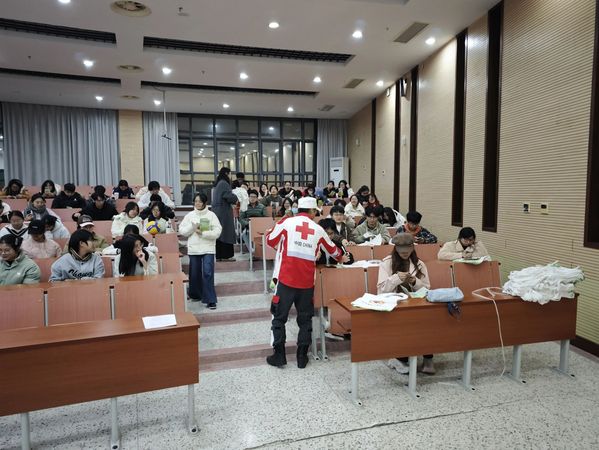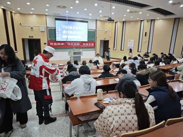 活动伊始,全体师生共同观看了防艾宣传视频。生动的影像资料帮助大家初步建立起对艾滋病的科学认知。随后,市红会培训老师荣中祥、王鑫围绕艾滋病基础知识、传播途径、防治进展以及反歧视理念等内容展开系统讲解,结合真实案例与权威数据,引导同学们树立科学的防护意识,消除对艾滋病的误解与偏见。
